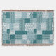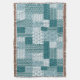 Chic Ethnic Faux Patchwork Pattern, Teal and White Throw Blanket