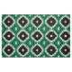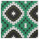 Unique and modern fabric design featuring a seamless decorative pattern made of geometric shapes in emerald green, black and white.