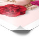 Elegant rose gold perfume bottle with red roses and diamond earrings. Marquise cut diamond. Pale pink background. **CUSTOM BACKGROUND COLOR AVAILABLE** - Change it on the customise it panel. Digital Illustrations hand painted by Julia Aguiar.