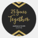 This elegant round sticker features a chic geometric chevron and the word "25 Years Together" in faux gold against a black background. It's great for a 25th anniversary celebration. Check out matching invitations and items here http://www.zazzle.com/collections/modern_faux_gold_chevron_celebration_collection-119531050277382712?rf=238364477188679314