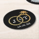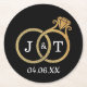 Chic Faux Gold Foil Monogram Wedding Rings Round Paper Coaster