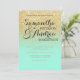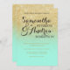 Chic faux gold glitter mint green wedding invitation suite collection. A modern, pretty faux gold glitter shower ombre with bright mint green colour block with gold ombre pattern fading onto a colourful and vibrant mint background.Perfect for glamour, chic and elegant wedding theme
