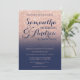 Chic faux rose gold glitter navy blue wedding invitation suite collection. A modern, pretty faux rose gold glitter shower ombre withnavy blue colour block with gold ombre pattern fading onto a colourful background.Perfect for glamour, chic and elegant wedding theme