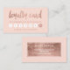 A modern, stylish loyalty card for hair and makeup artist business card with modern hand lettering style brush typography in faux rose gold foil on a trendy and elegant blush background.