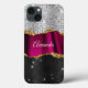 Chic faux silver glitter Fuchsia black monogram Case-Mate iPhone Case