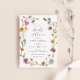 Baby Shower invitation featuring a wreath of watercolor wildflowers and greenery. Personalise with your information or click "click to customise further" to adjust font type, size, colour.