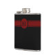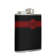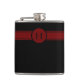 CHIC FLASK _HORIZONTL_18 RED WITH BLACK STRIPED & CIRCLE MONOGRAM BAND. BLACK MONOGRAM