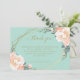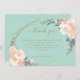 Chic Floral Blush Peach Gold Mint Green Wedding Thank You Card