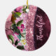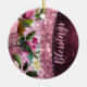Chic floral Burgundy pink purple glitter monogram Ceramic Tree Decoration