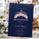 Chic Floral Crown Navy Blue Quinceañera Invitation
