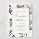 Classy and elegant floral botanical on white background with gold colour text photo graduation party invitation.