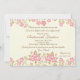 A floral invitation well-suited for any feminine celebration. Hot pink flowers with golden foliage border the top and bottom of the card and pencil-thin golden stripes create a delicate background. (Floral leaves wedding invitation sleeve by Vectoropenstock.com)