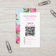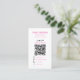 This great professional business card with a modern simple professional minimalist design, a modern simple professional minimalist, a QR code scannable scan website, with social media connect with me, a chic feminine floral pink peony, with a flower garden bouquet elegant girly, modern trendy white business, great for office corporate trendy stylish design, contemporary elegant minimalist design, phone website cell email icon, clean sophisticated contemporary