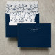 Chic Floral Sketch Text Navy Blue Wedding Envelope