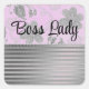 On this stylish sticker is a silver floral pattern on a pink backdrop where you can personalise it with a name, logo or phrase or keep as is with the words "Boss Lady" which is bordered by a silver necklace and below that are shimmery silver stripes for added chic.