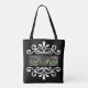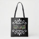 Chic floral vector cat green eyes on black Tote Bag. Cat eyes can be customised with your favourite horizontal image.