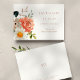 Chic and elegant. This gorgeous wedding save-the-date card features a colourful floral bouquet, a contemporary set of fonts in a rich dark ochre against a chic ivory background. The template is completed with couple initials side by side at the back and aditional text for wedding website if needed. Memorable and unique, this card excudes a sense of elegance, joy and charm.