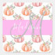 Chic and girly monogram square sticker with spring / fall floral pink and peach pumpkins and a white background. Your custom name and monogram are written in an elegant hand lettered white and grey script with a pink background. You can change the text colour and font style and size using the customise option.