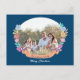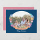 Chic Floral Wreath Dark Blue Photo Christmas Holiday Postcard