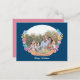 Enter a world of enchantment with our "Chic Floral Wreath Dark Blue Photo Christmas Holiday Postcard". This design features a delicately hand-drawn watercolor gouache floral wreath, hiding whimsical details like the mischievous Cheshire Cat and tiny magical mushrooms. The wreath frames a space where you can insert your favourite photo, adding a personalised touch to your holiday greetings.