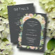 All in one wedding invitations feature your ceremony details on the front and more details on the back in chic white lettering. Beautiful watercolor flowers - white and green hydrangeas, pink and cream roses, daisies, small stems and leaves - on the front with your info on a dark arched overlay. MATCHING items in our store.