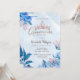 Elegant glitter crown and flowers on blue quinceañera party invitation.