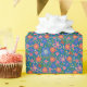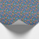 Chic Folk Art Style Floral on Blue Wrapping Paper