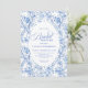 Chic French Toile de Jouy Blue Roses Bridal Shower Invitation