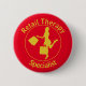 A fun Button/Badge featuring a silhouette of a skipping woman carrying shopping bags with the words 'Retail Therapist' above and below.