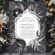 This sleek and modern wedding invitation features a geometric diamond frame adorned with elegant monochromatic florals. Set against a deep charcoal background, the clean lines and grayscale colour palette create a sophisticated and contemporary look. Perfect for couples seeking a stylish and refined wedding aesthetic, this design seamlessly blends modern geometry with timeless floral elegance.