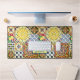 Chic geometric Mediterranean orange tiles monogram Desk Mat. Chic floral botanical citrus garden pattern inspired by the summer bright italian themed art of majolica. Beautiful Sicilian ceramic tiles in pink yellow and blue. A fun style bright design for home decor, clothes, mobile and Ipad cases, invitations and much more. You can change all text colours and fonts, click to customise further underneath the text customisation area this will take you into the design tool. A unique gift for birthdays, holidays and any special occasion. Whether for valentines day, Christmas or as a gift in general it makes a great gift idea