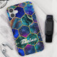 Chic girly faux Glitter Turquoise blue geometric iPhone 16 Case. To make it extra special, it is also monogrammed and personalised. The contemporary geometric design combines elegance with a playful spirit, making it the perfect fit for you. This design showcases a mosaic of soft, muted colours in geometric shapes, creating a soothing yet chic aesthetic. The hexagons gives a modern twist, making it an eye-catching accessory for everyday use.
