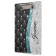 Chic girly faux Silver glitter black teal monogram Clipboard
