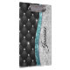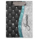 Modern clipboard for your fabulous sketches or designs. With elegant girly faux silver teal turquoise aqua glitter and rhinestones bling with black tuffted design. This stylish cute design would be great for girls who enjoy sparkly designs. Show off your personal style, look fashionable, trendy and feel stylish around your friends with a unique design on your clipboard or customise it over another product of your choice.