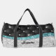 Chic girly faux Silver glitter black teal monogram personalised Duffle Bag. It is designed with elegant girly silver and iridescent faux glitter turquoise and Tuffted black.