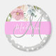Chic & Girly Floral White Pink Grey Monogram Name Magnet