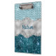 Modern clipboard for your fabulous sketches or designs. With elegant girly faux glitter bling in mint, green teal and faux silver glitter design. This stylish cute design would be great for girls who enjoy sparkly designs. Show off your personal style, look fashionable, trendy and feel stylish around your friends with a unique design on your clipboard or customise it over another product of your choice.