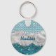 Chic girly teal mint green glitter silver monogram key ring