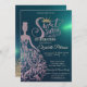 Chic Glitter Dress,Tiara, Diamonds Green Sweet 16 Invitation