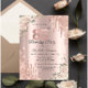 A modern, chic, and glamourous with glitter drips, and flowers on a rose gold background.