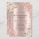 A modern, chic, and glamourous with glitter drips, and flowers on a rose gold background.