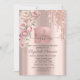 A modern, chic, and glamourous with glitter drips, and roses on a rose gold background.