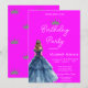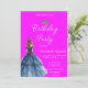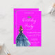Chic Glitter Tiara Blue Dress Neon Pink Birthday Invitation