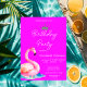 Chic Glitter Tiara Flamingos Neon Pink Birthday Invitation