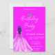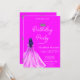 Silver glitter tiara, and girl dress on neon pink background birthday party invitation. Have fun at your birthday party with this elegant invitation. Invite your guests to raise a glass and join in on the fun with these festive invitations.