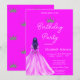 Chic Glitter Tiara Girl Dress Neon Pink Birthday Invitation
