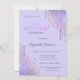 A modern, chic and glamourous invitation with glitter drips on a lavander background.