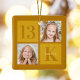 Chic gold 2 photo square birthday keepsake ornament for a fancy celebration. Celebrate your birthday with cute photographs on this add your own photograph gift with elegant colours. Add their name and age.