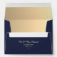 This simple yet elegant and luxury navy blue wedding envelope exudes modern chic with a unique twist. The 5x7 format features a return address and a charming gold cat couple monogram with initials at the top flap, adding a personalised and whimsical touch to your wedding stationery. Perfect for a stylish and memorable celebration.