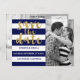 Chic Gold | Bold Blue Stripe Photo Save the Date Announcement Postcard